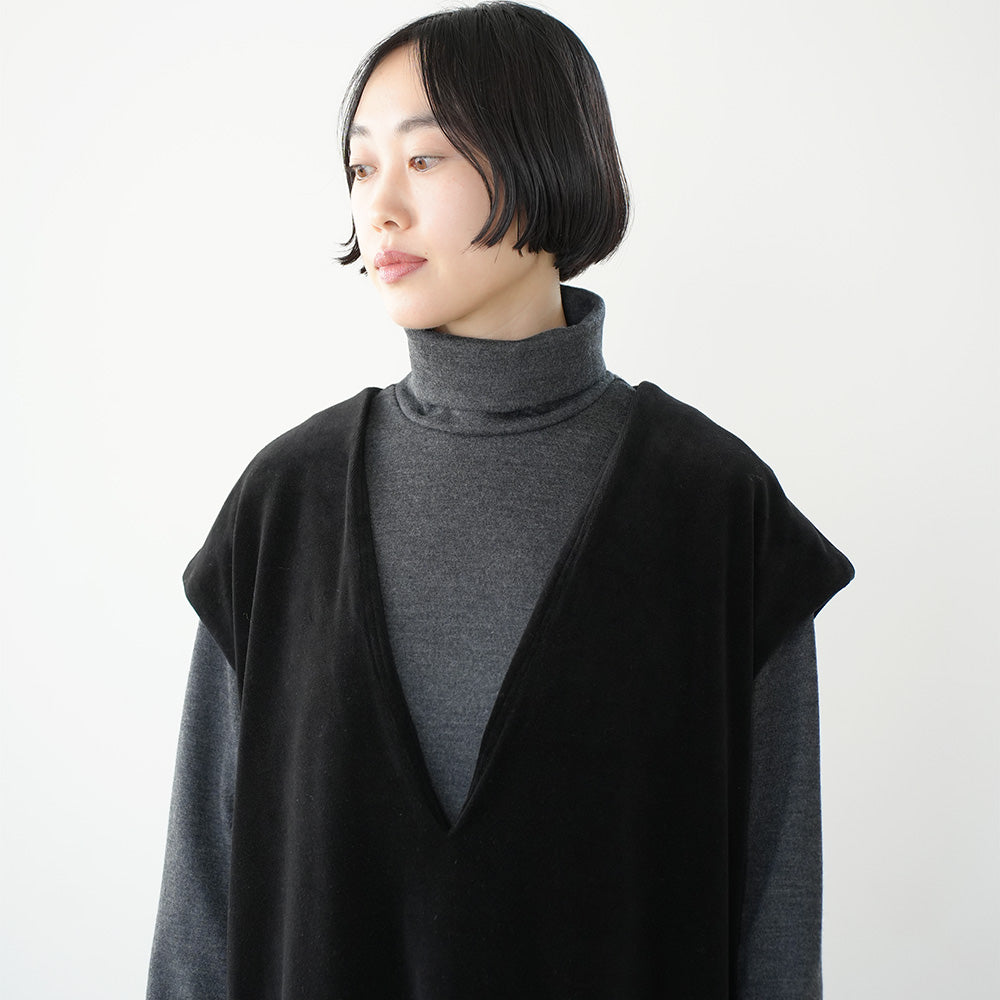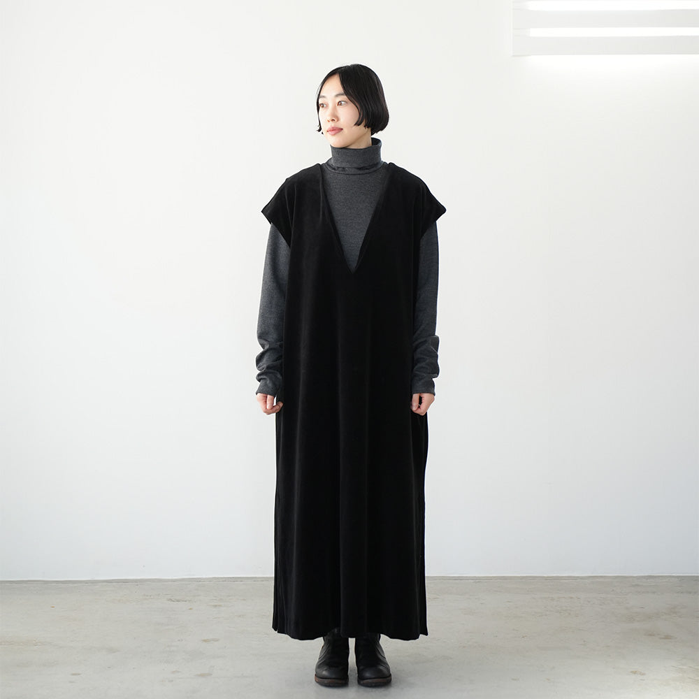 フロントは深めのⅤ開きで肩を落としたシンプルで落ち感のある大人ワンピースに仕上げました。