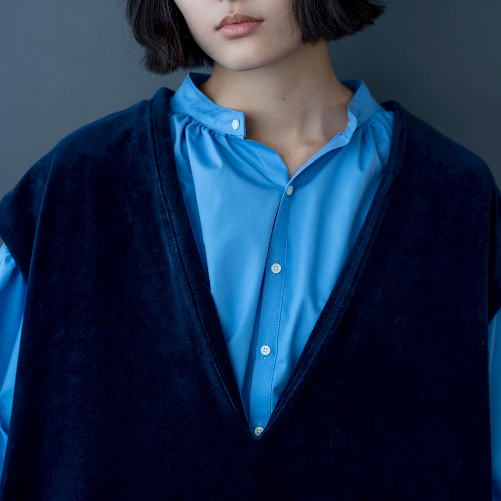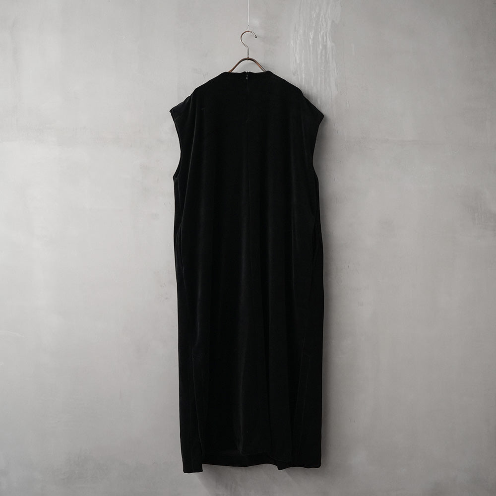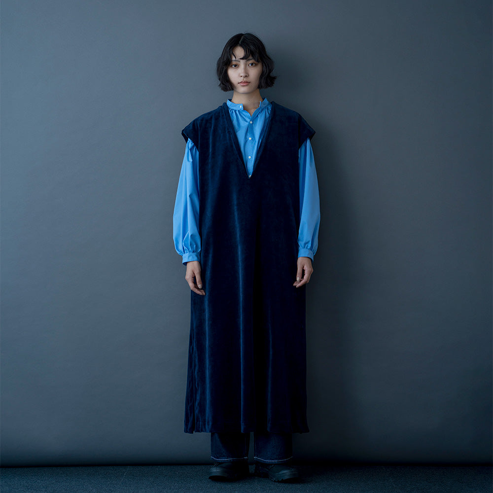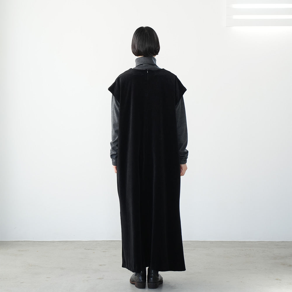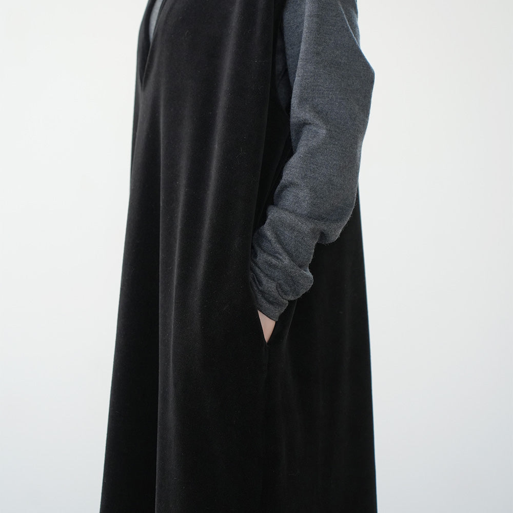 脇にシームポケット、両脇スリットを入れた、動きのあるドレープ感とベロアの光沢が魅力な1枚です。