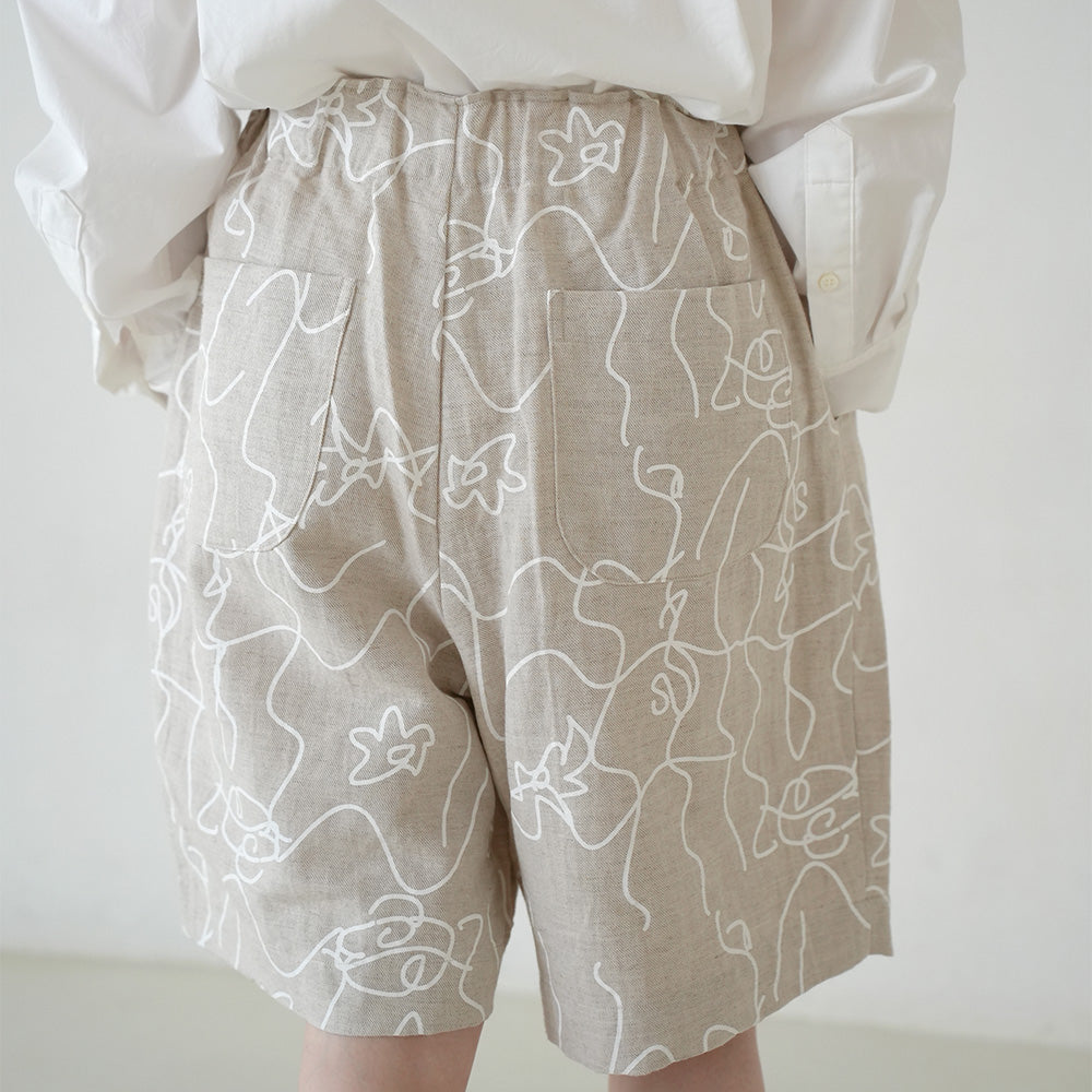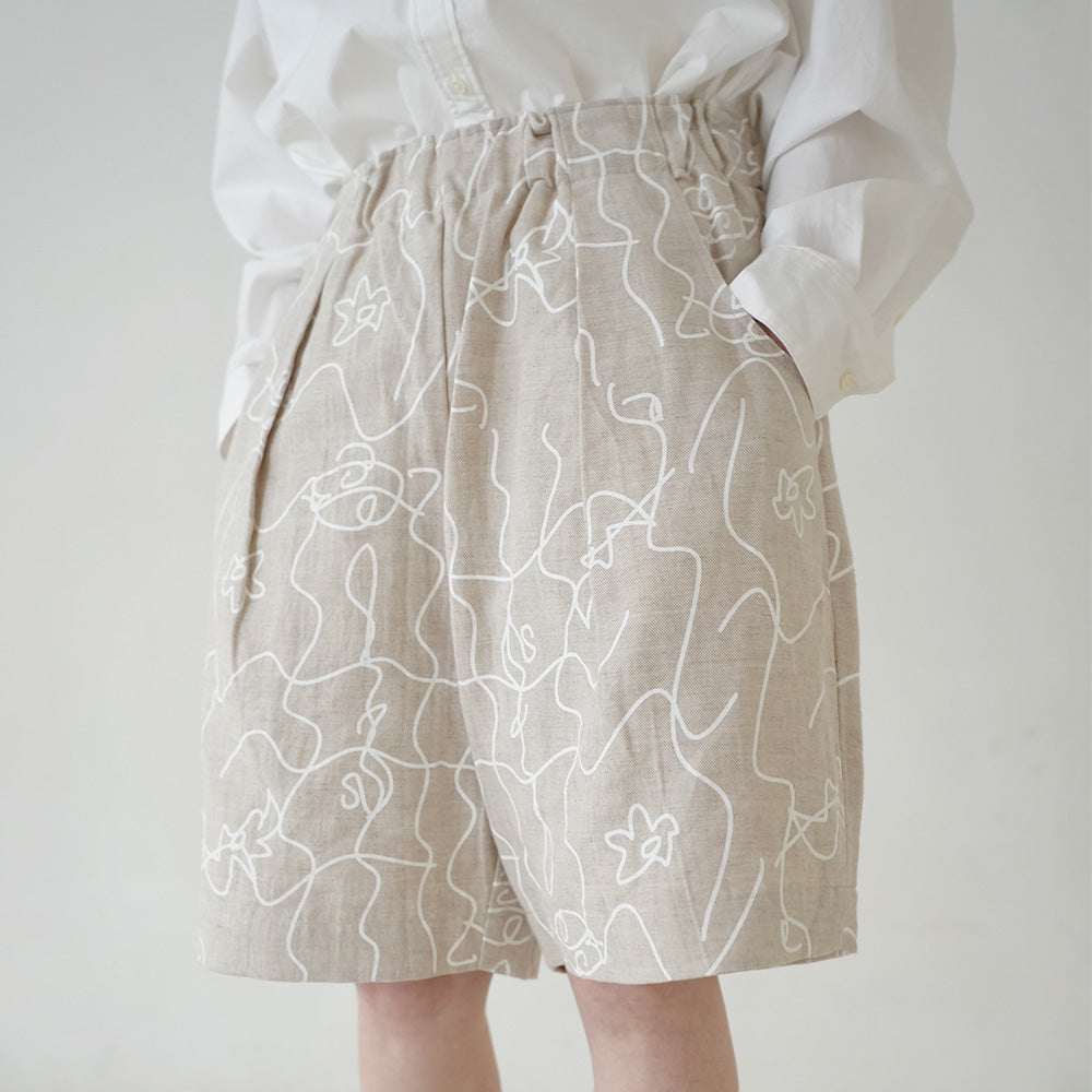 オリジナル ラインフラワープリント ショートパンツ