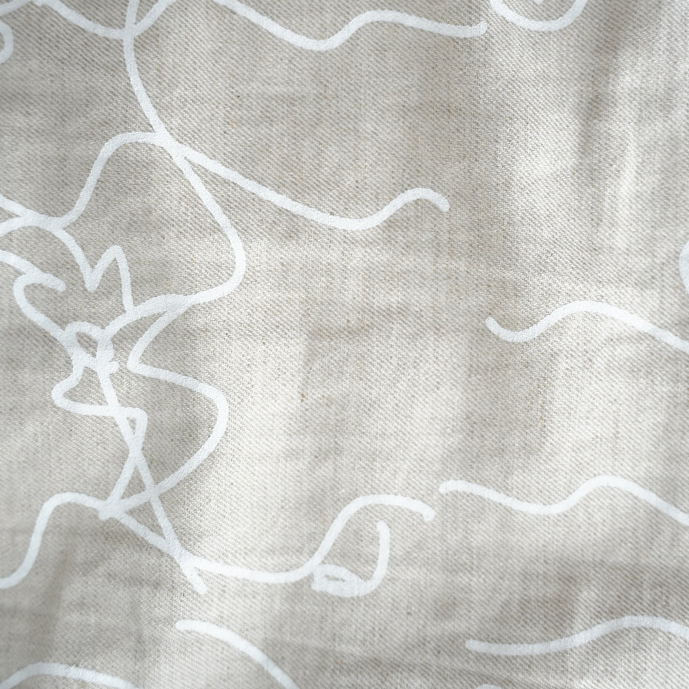 生成り地に、白いラインの花柄オリジナルプリントとなっております。