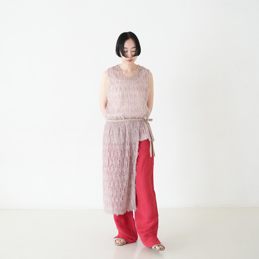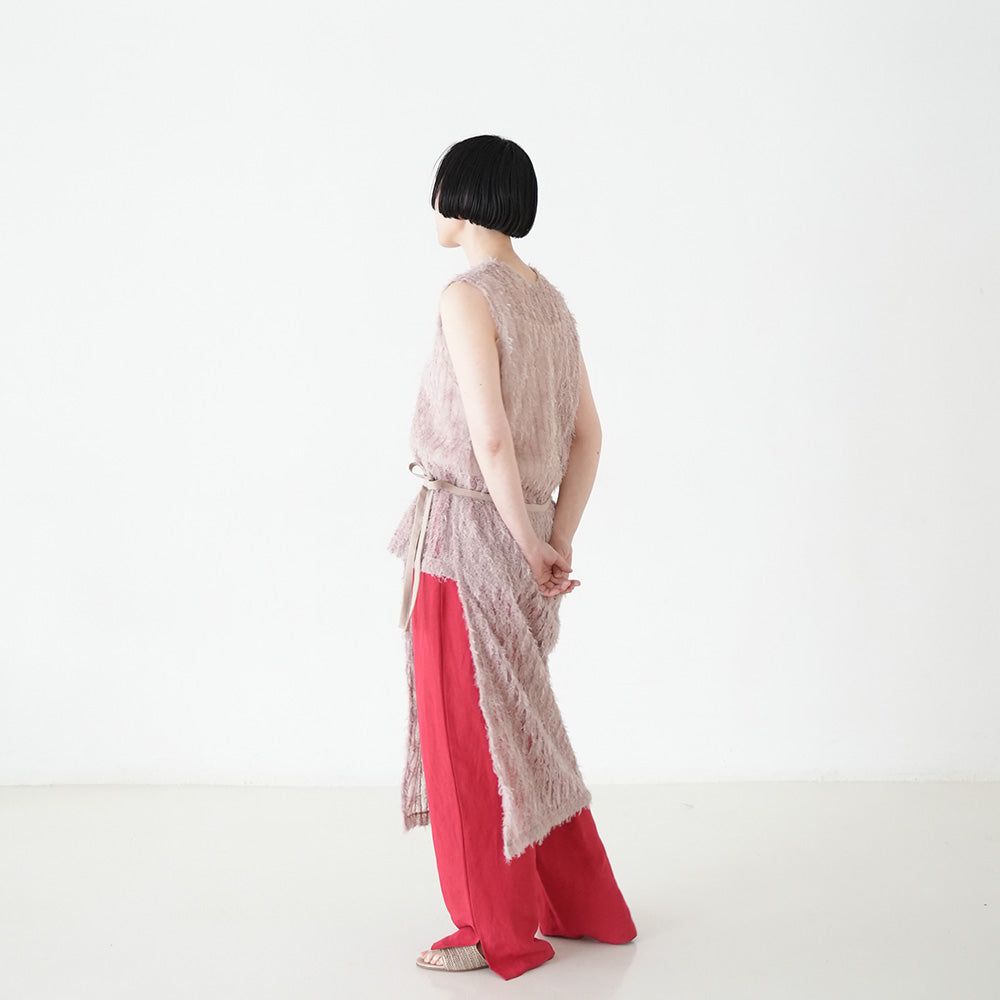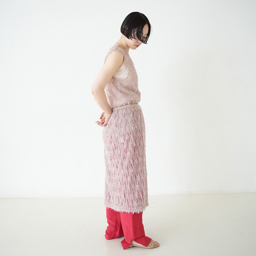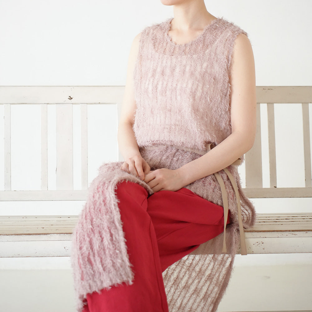 パンツやスカートとのレイヤードで奥行きのあるスタイルを演出し、動くたびに揺れる表情が洗練された女性らしさを引き立ててくれるアイテムです。