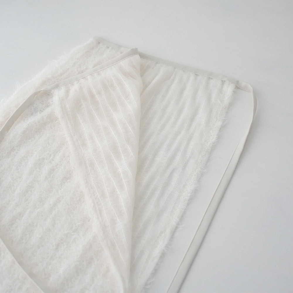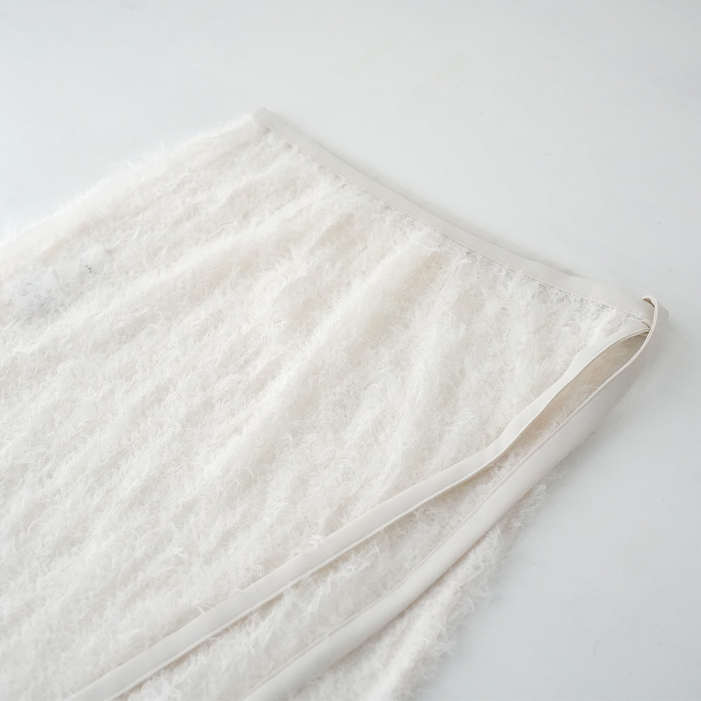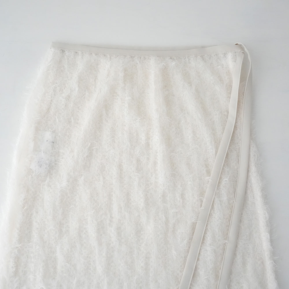 羽のように軽やかなフェザーチュールを使用したラップスカートです。