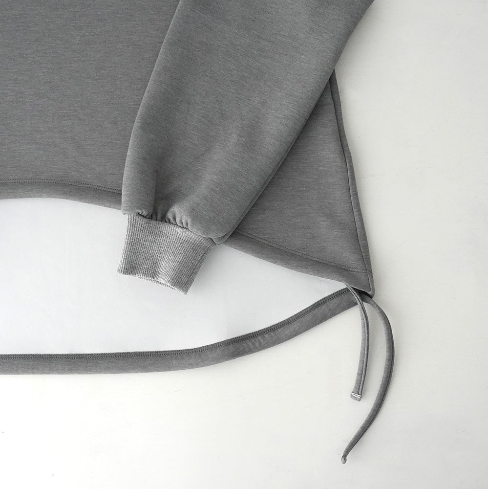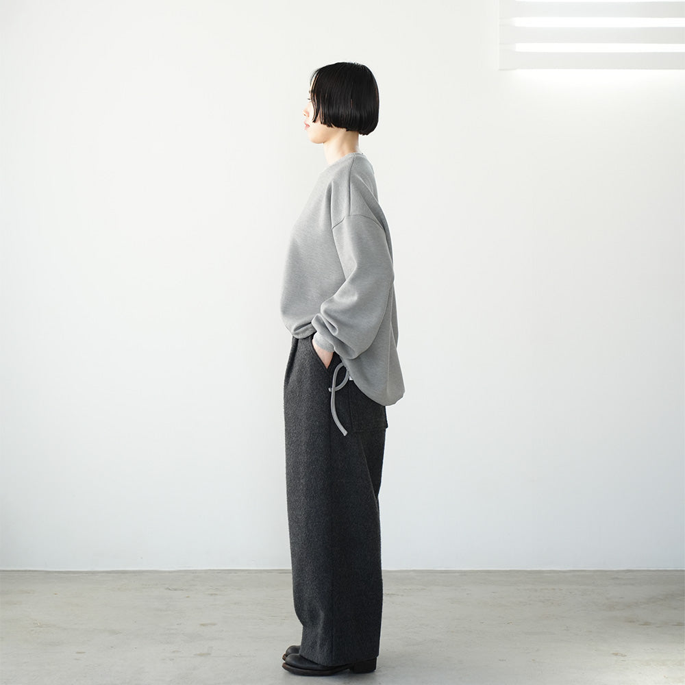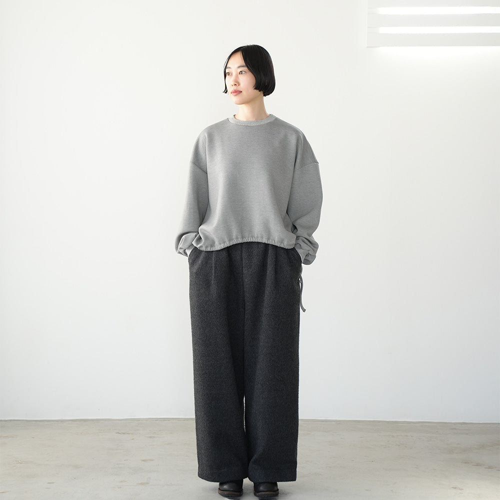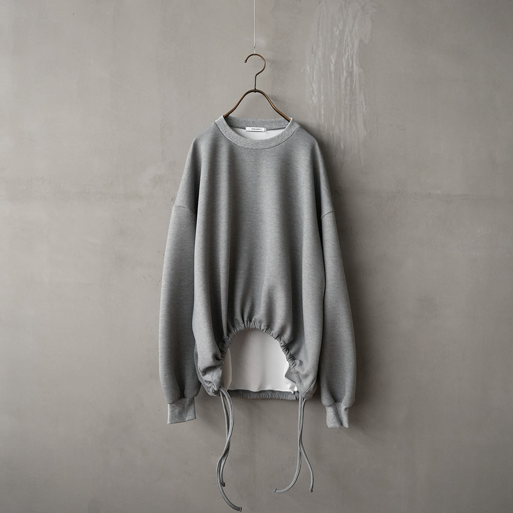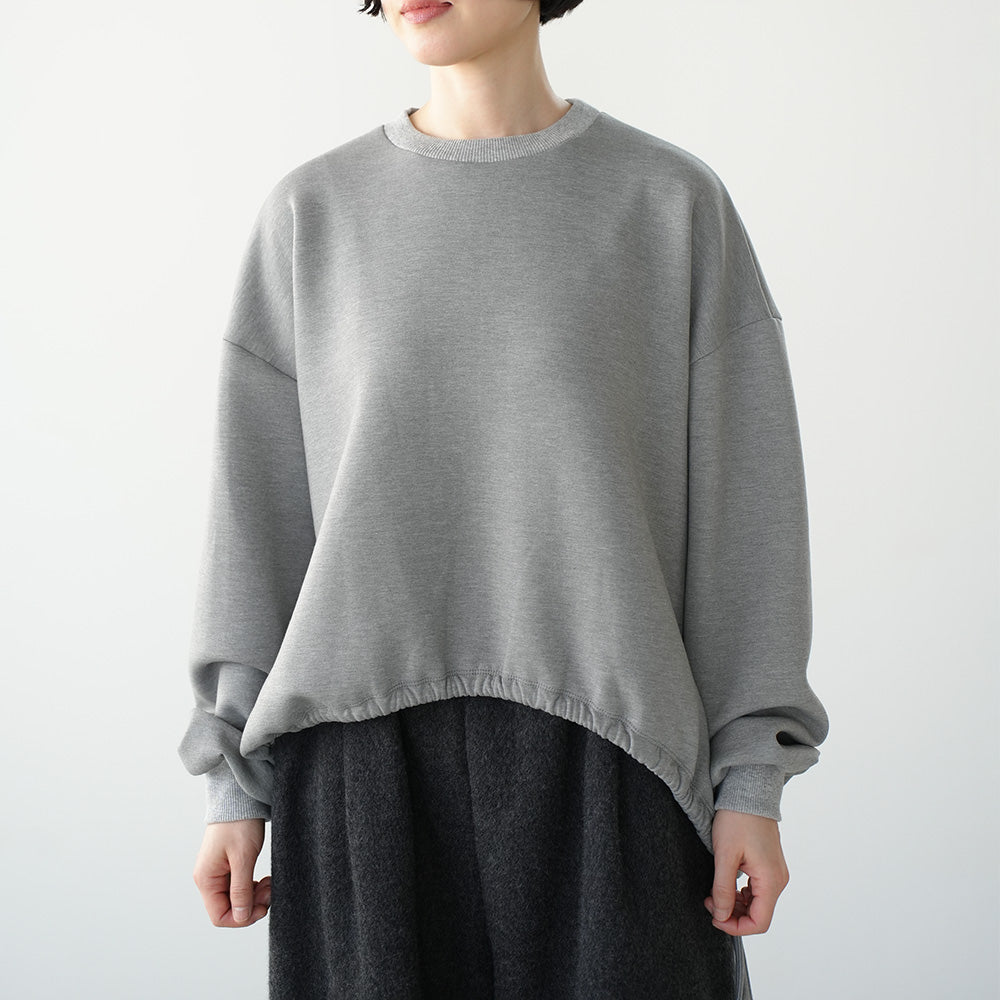 シンプルなワイドシルエットに裾を前後ラウンドさせスピンドルを通し、ふんわりとしたバルーンシルエットで着ていただけるクルーネックカットソーです。