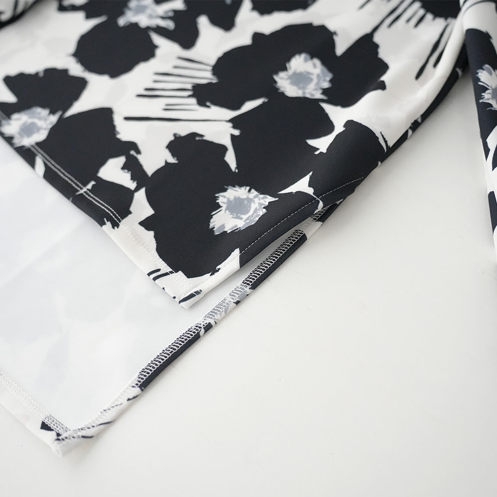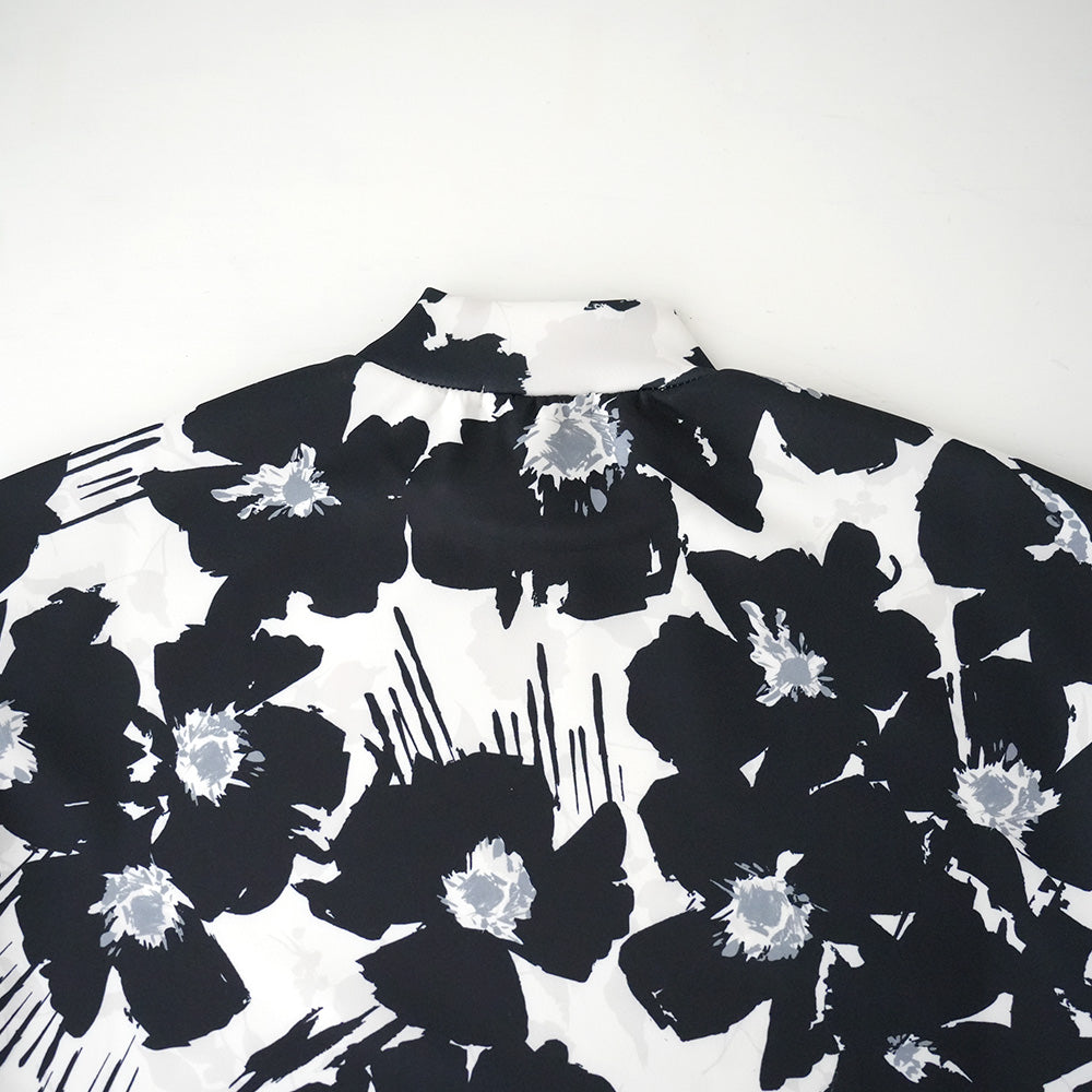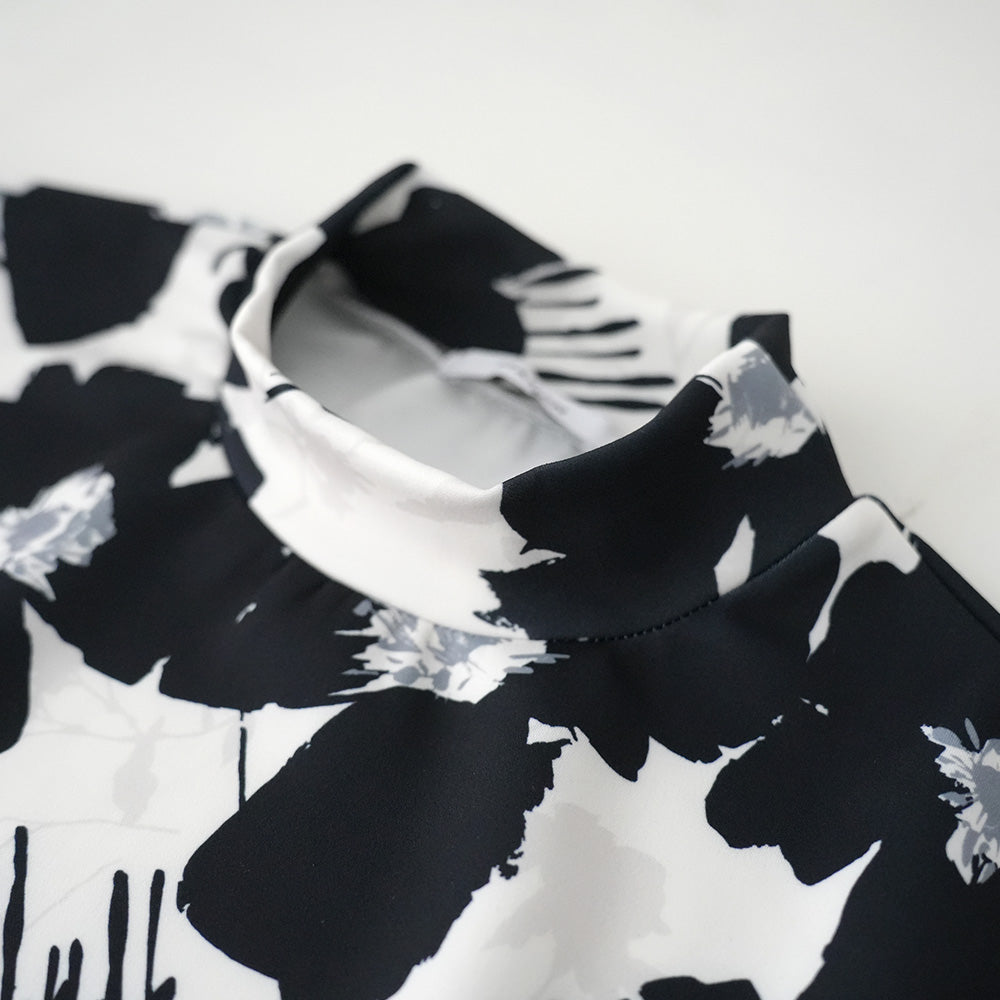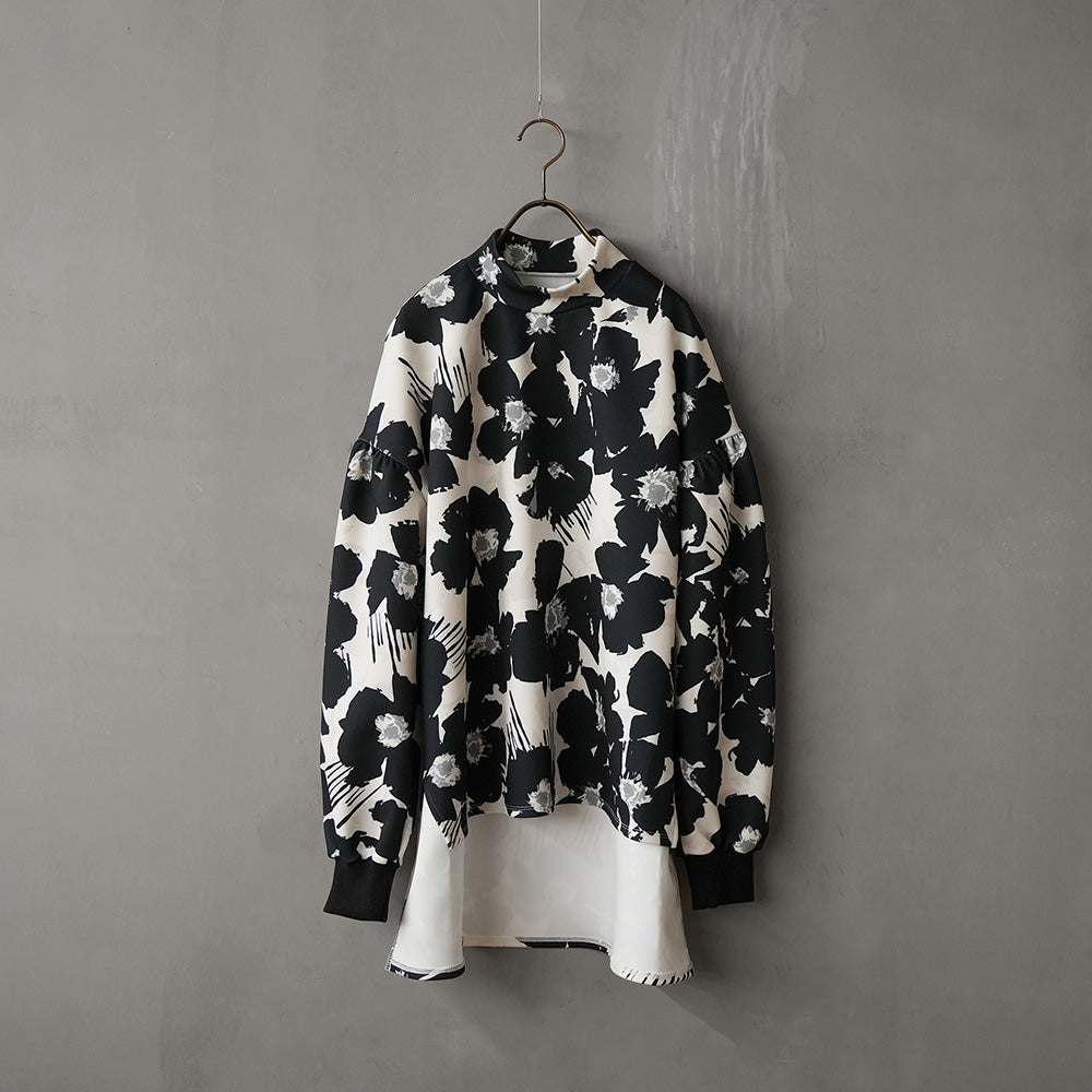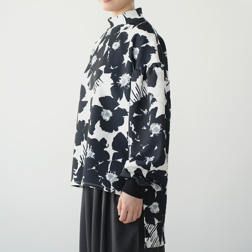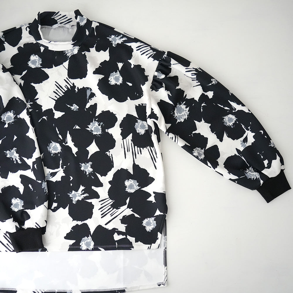 カードボードニット ロングスリーブ モックネック フラワーTシャツ