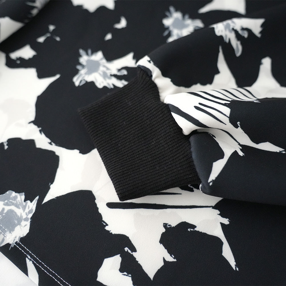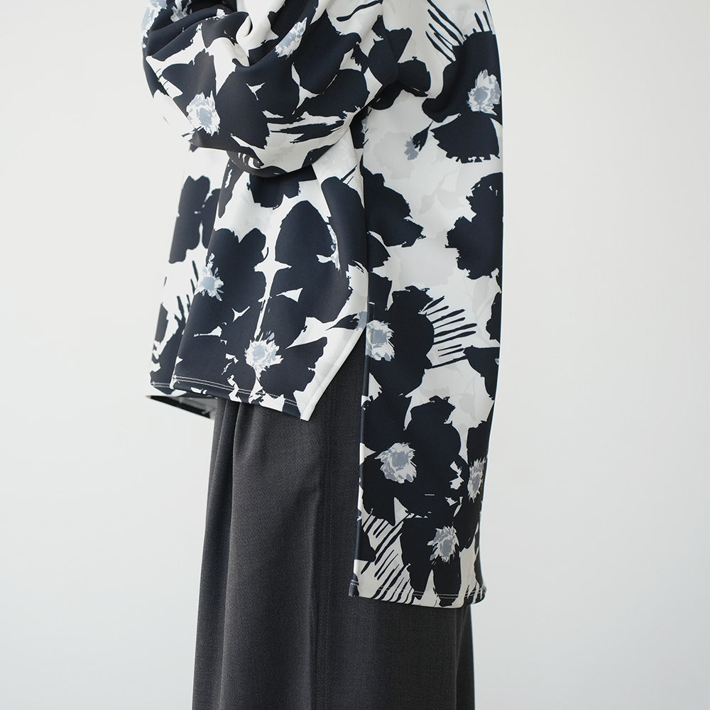 素材はMANONオリジナルの花柄をプリントしたしっかりとしたハリ感があり、立体的なシルエットのダンボールニットです。