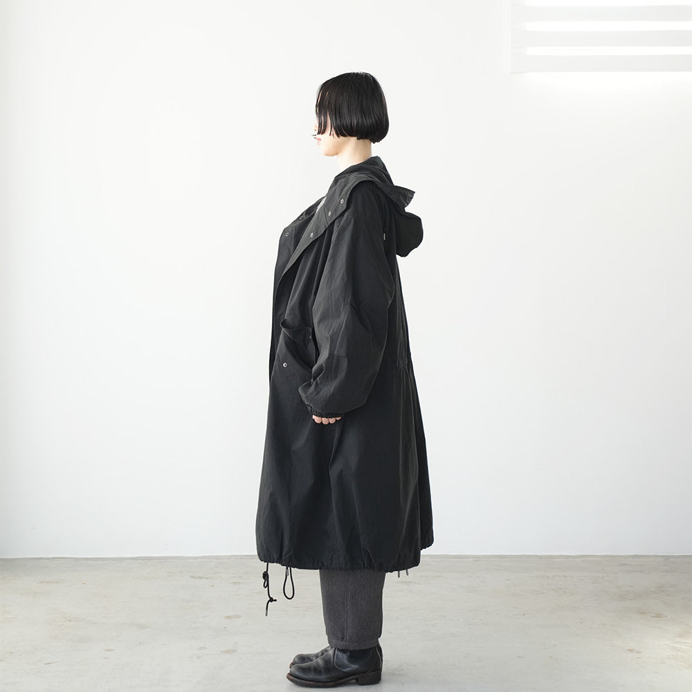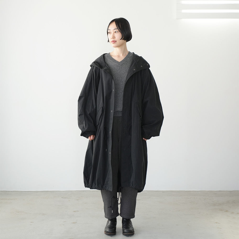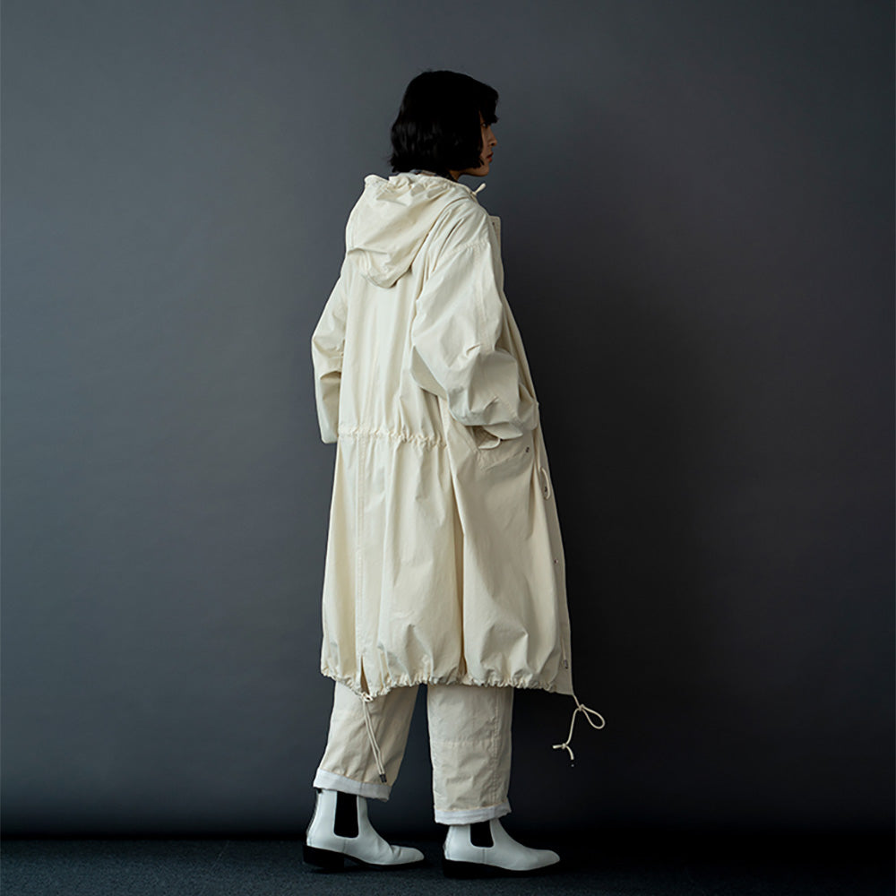 デザインはリラックスしたサイズ感のロングモッズコートです。
