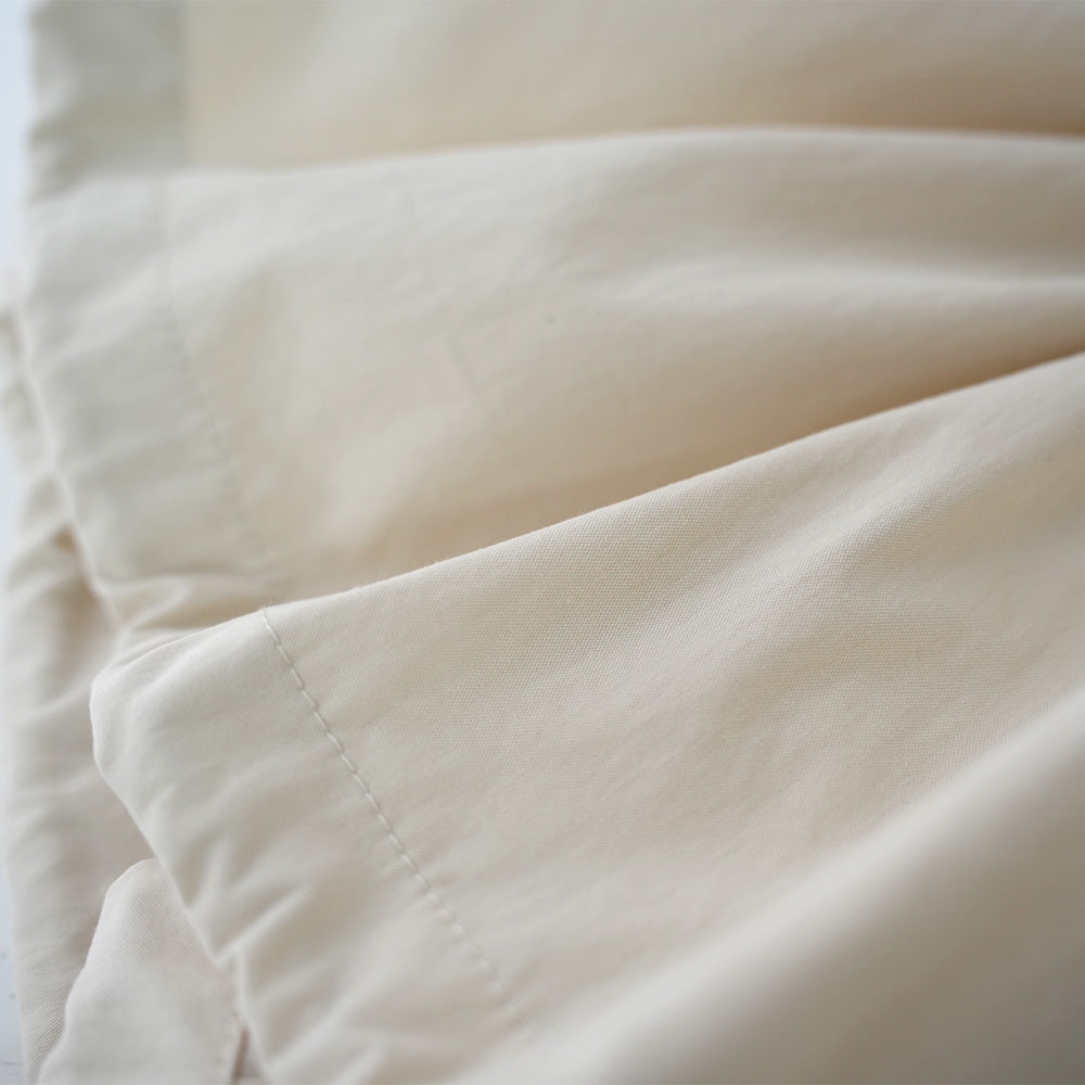 生地は綿ナイロンの交織素材です。ピーチ加工で毛羽による膨らみとバイオ加工でヴィンテージ風な表情を持った軽やかな素材です。