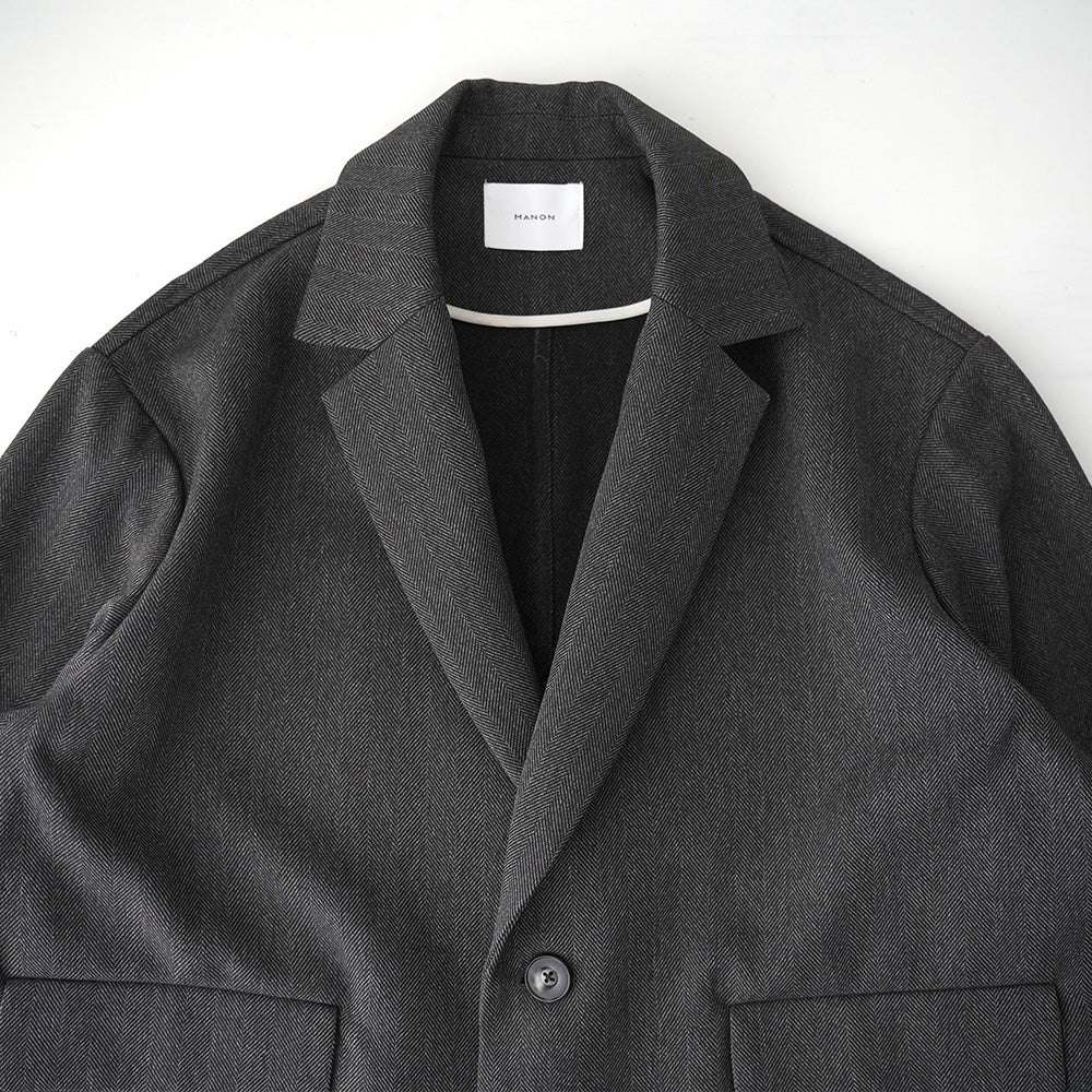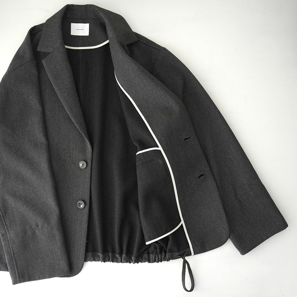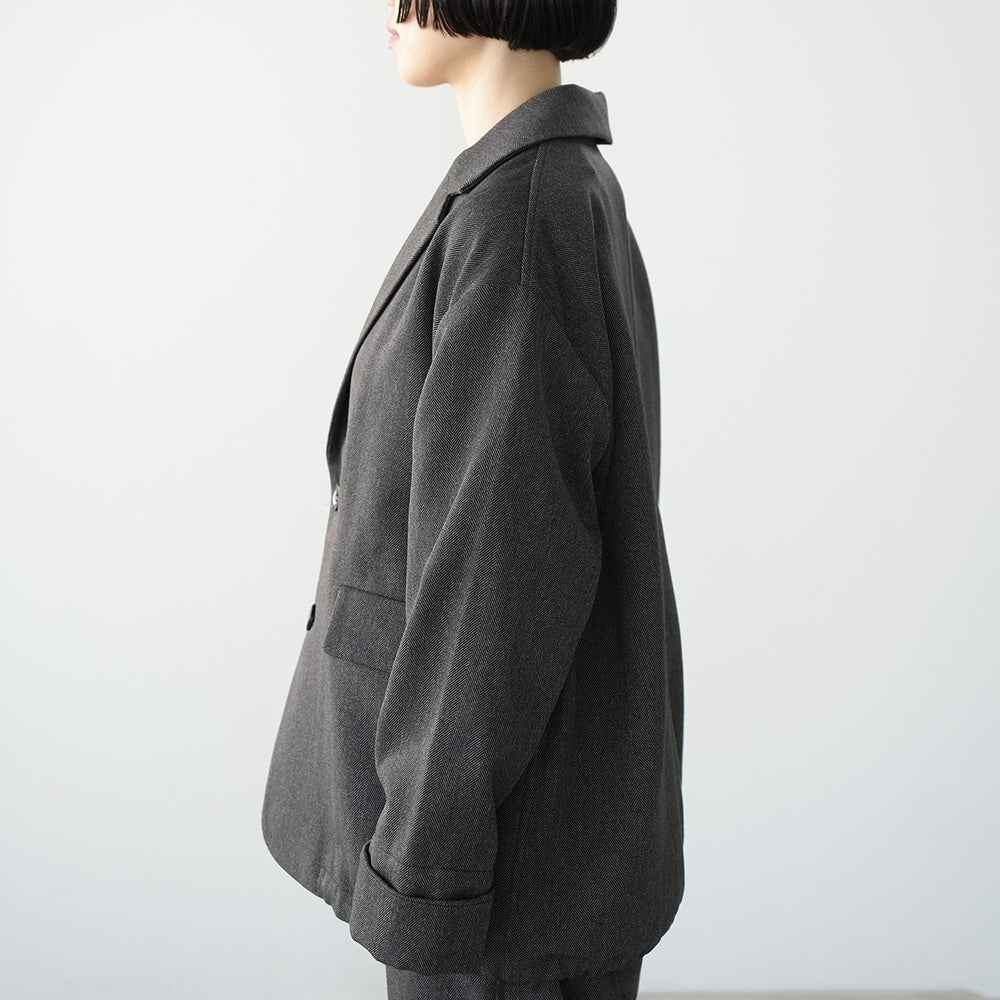 フロントは2つ釦で裾のスピンドルで緩いシルエットも楽しめてラフに着こなせるテーラードジャケットです。