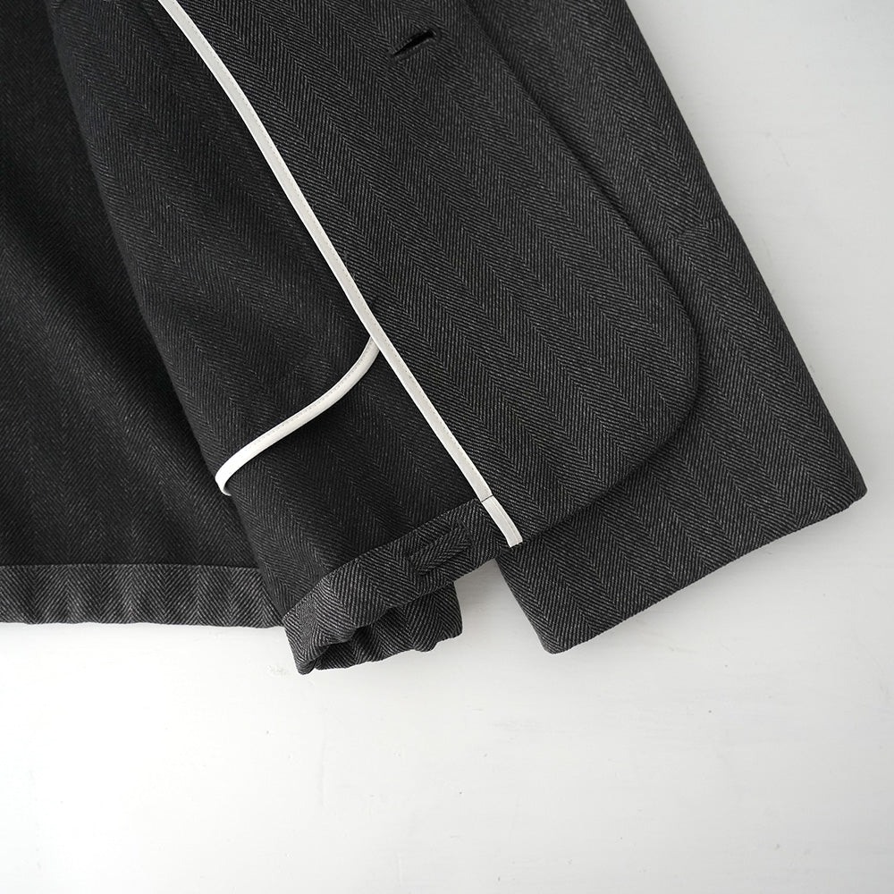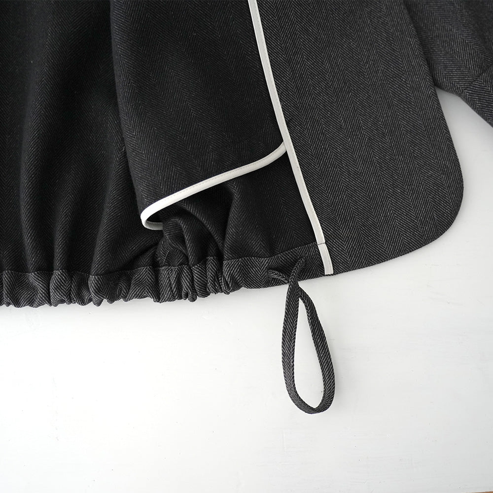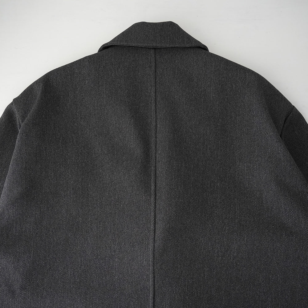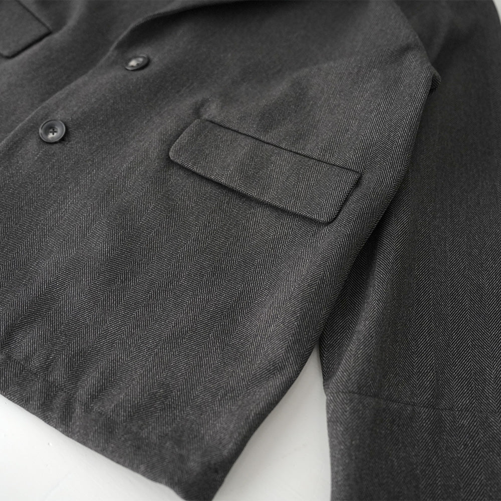 フロントは2つ釦で裾のスピンドルで緩いシルエットも楽しめてラフに着こなせるテーラードジャケットです。