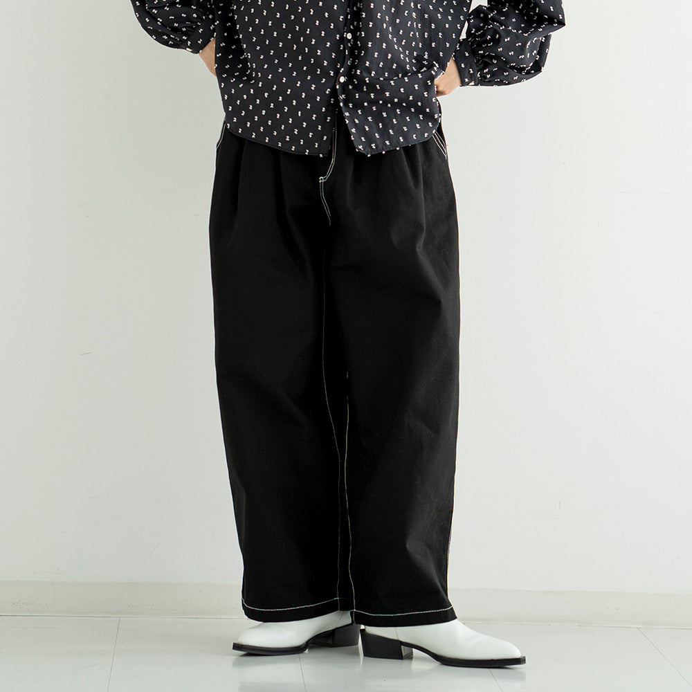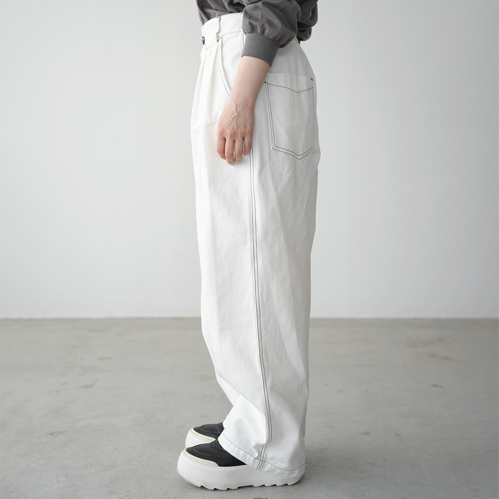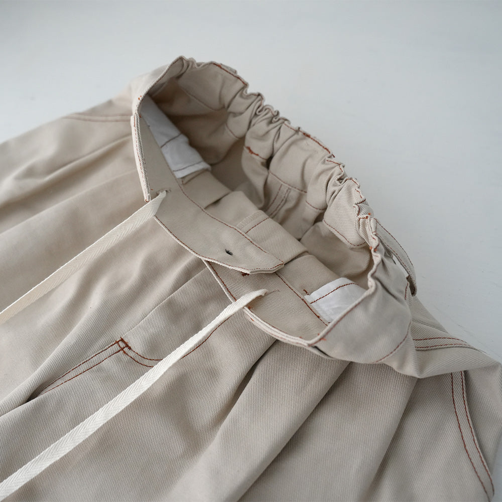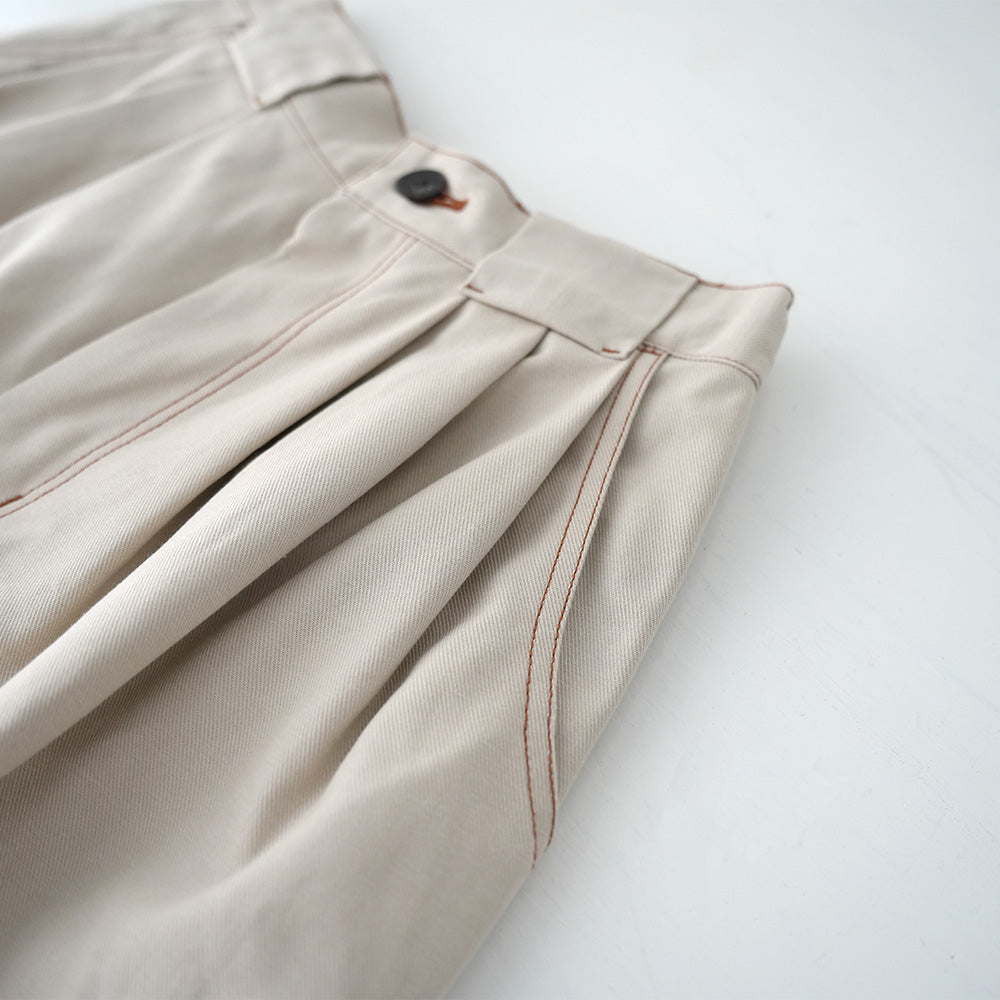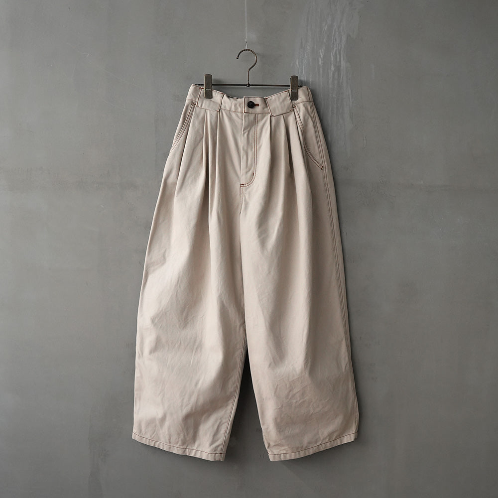 サイド3タックでゆとりを取ったワイドテーパードパンツです。