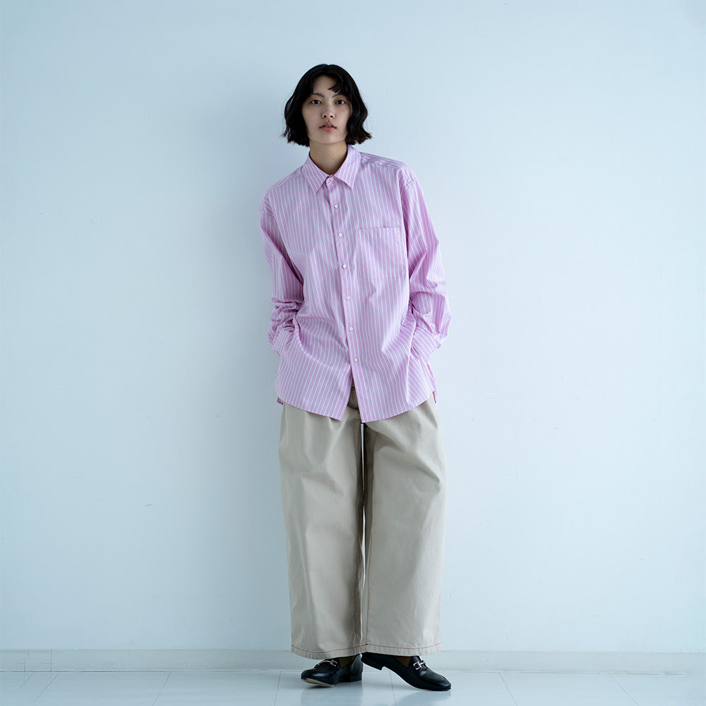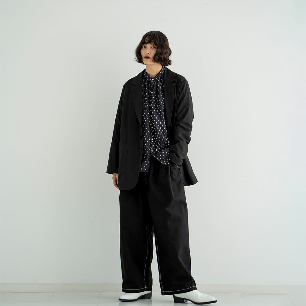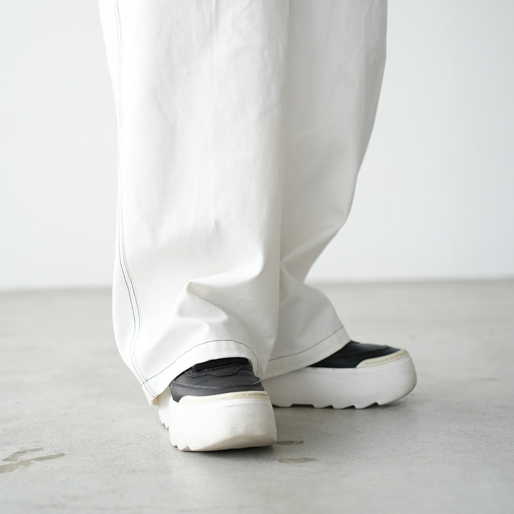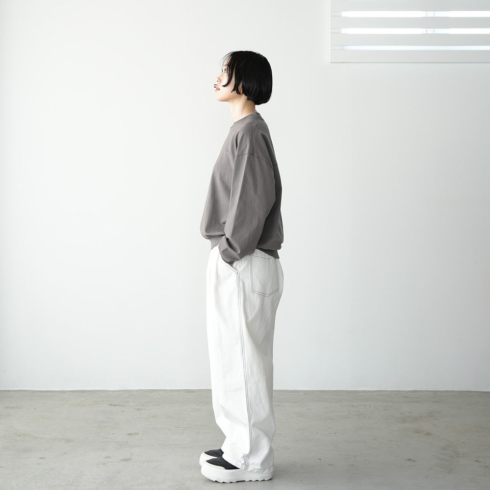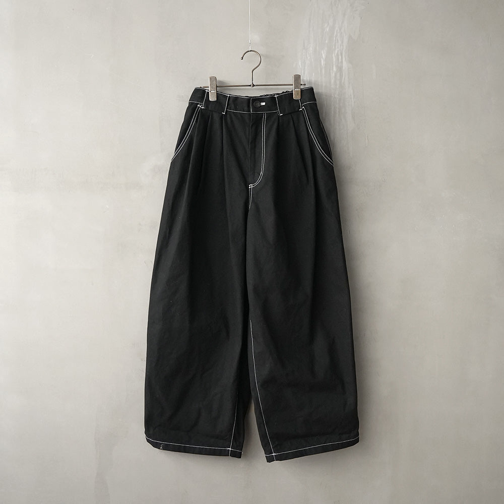 サイド3タックでゆとりを取ったワイドテーパードパンツです。