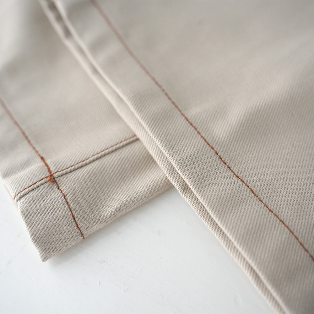 素材は綿8s糸をサージ組織に織り込み凹凸感のあるタフでヴィンテージ感の際立ったコットンサージです。