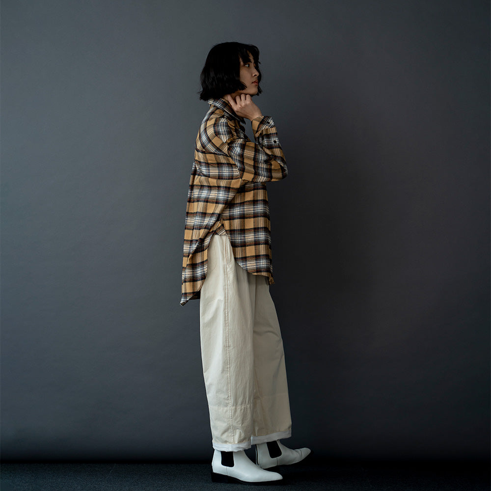 柔らかな温かみのあるビエラ素材でサラッと羽織ってただけるチェック柄が目を引く1枚です。