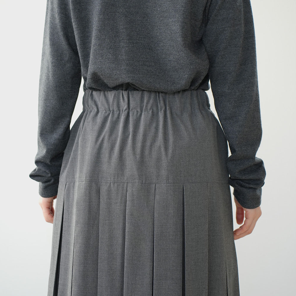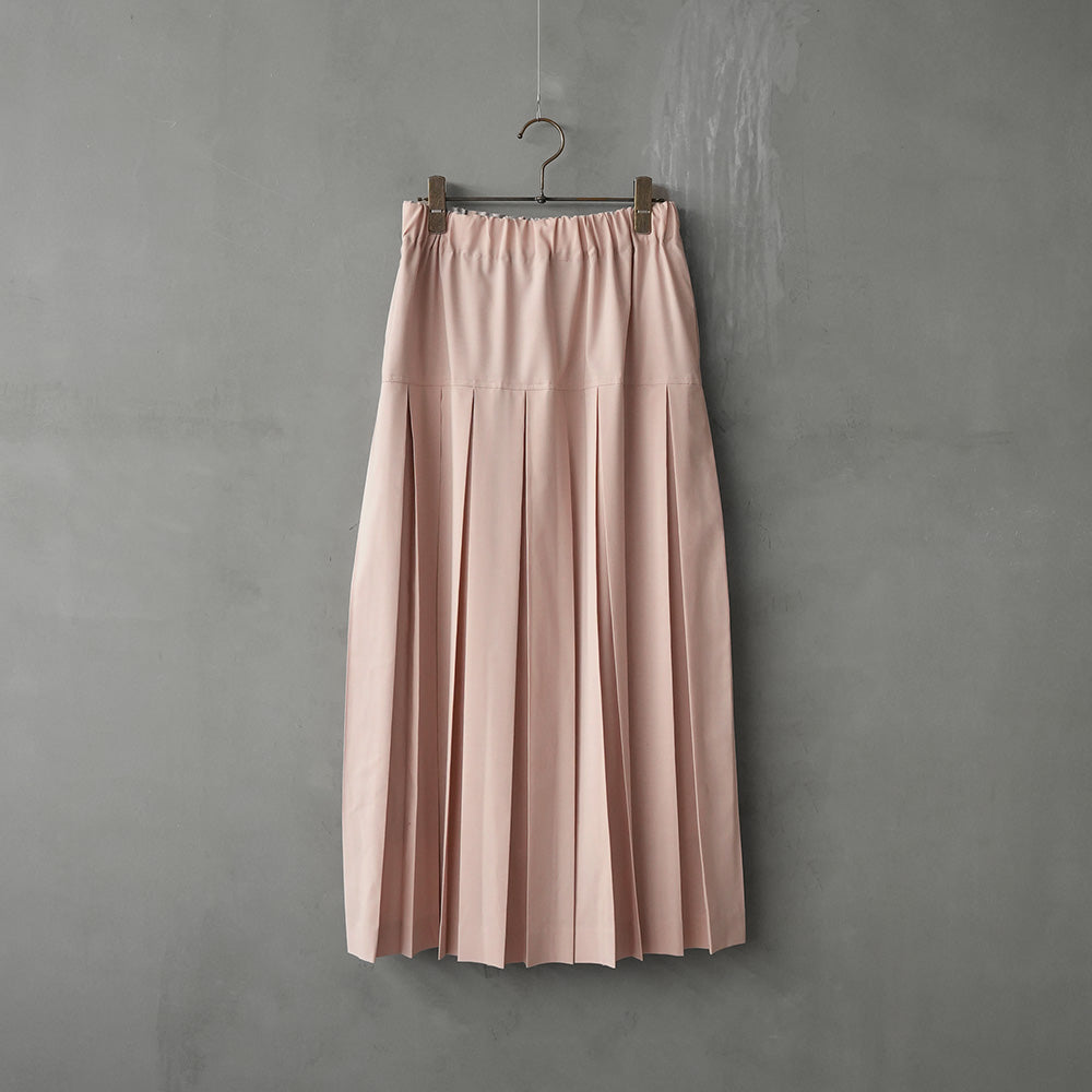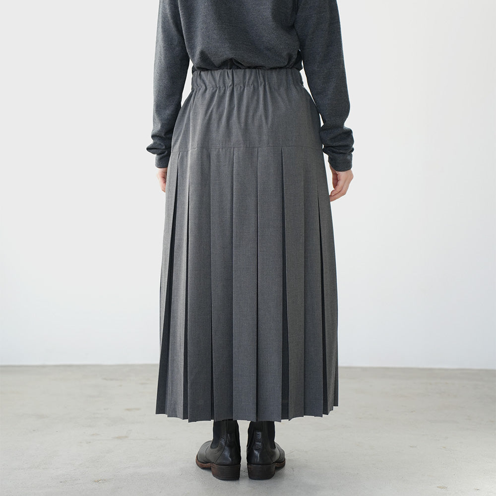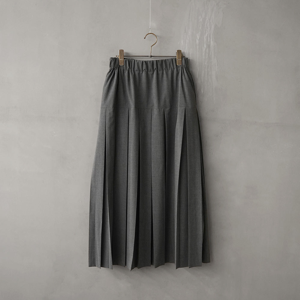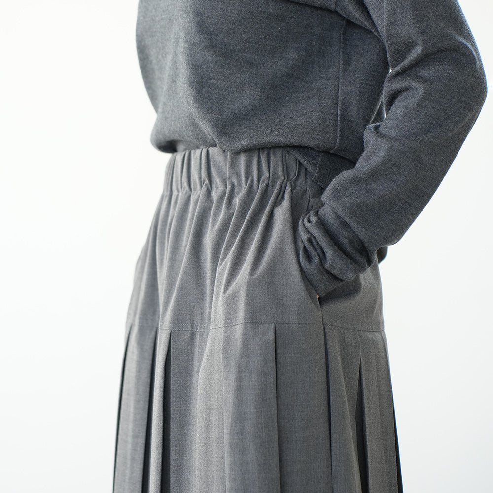 ヨーク切替えで腰回りはスッキリと広がりすぎず、上品で甘くなり過ぎないBOXプリーツスカートです。