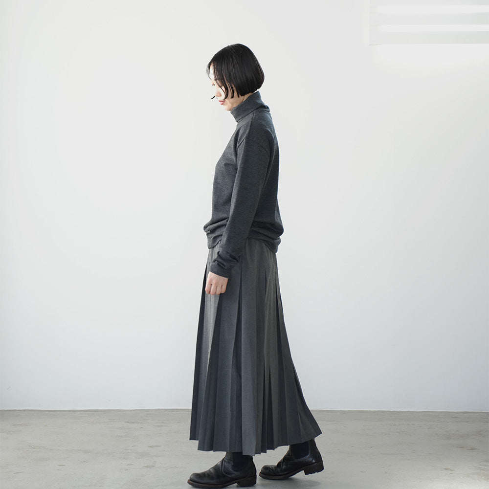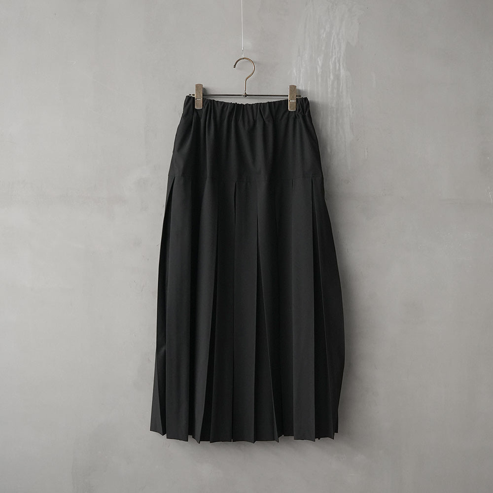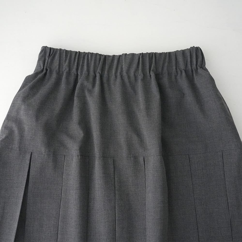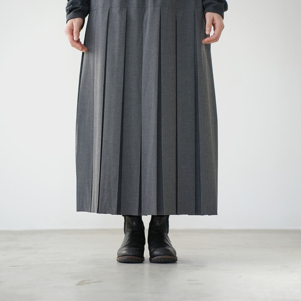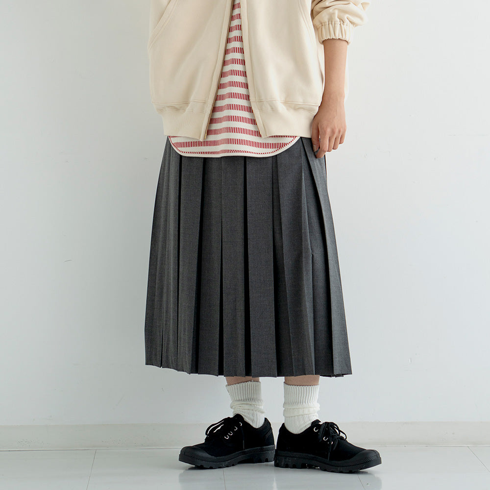 ヨーク切替えで腰回りはスッキリと広がりすぎず、上品で甘くなり過ぎないBOXプリーツスカートです。
