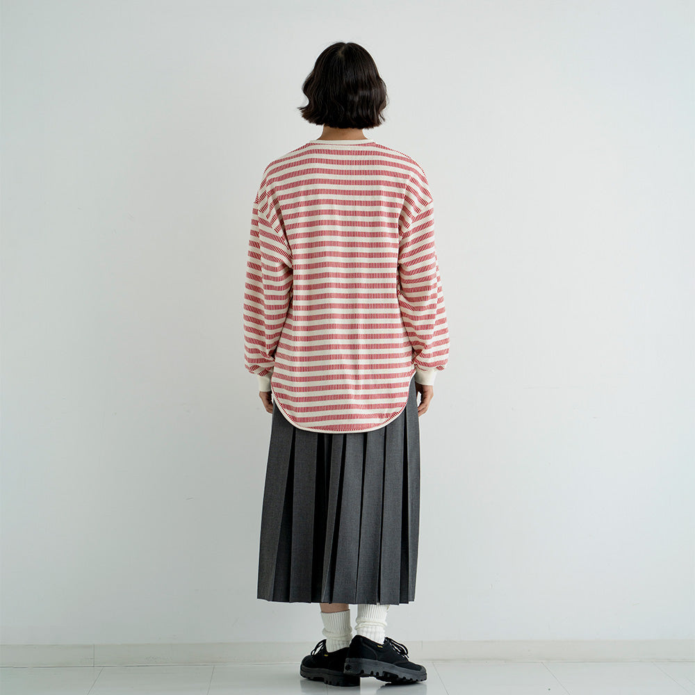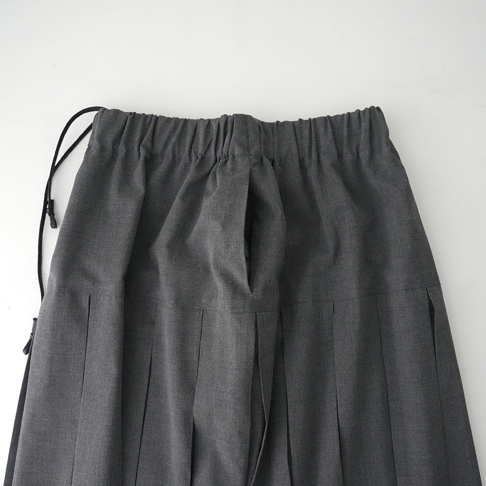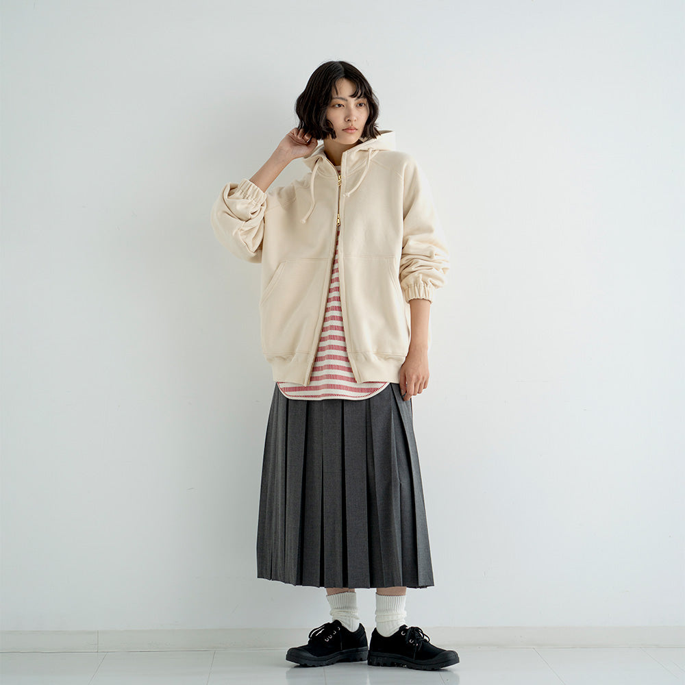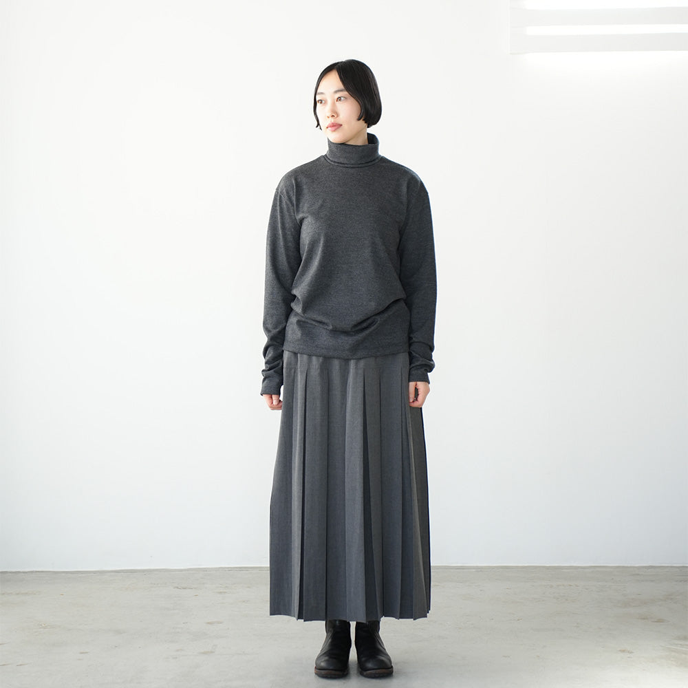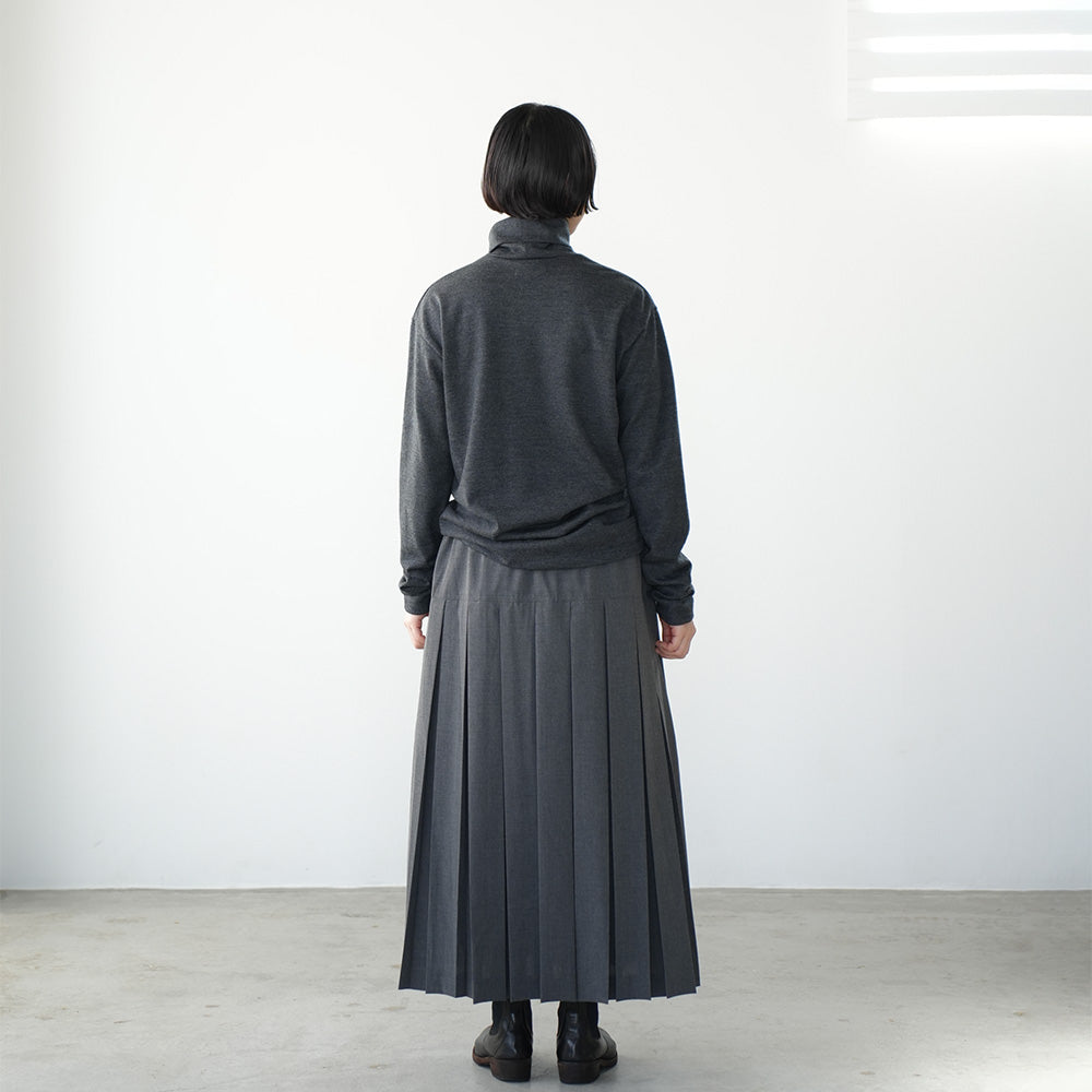 ヨーク切替えで腰回りはスッキリと広がりすぎず、上品で甘くなり過ぎないBOXプリーツスカートです。