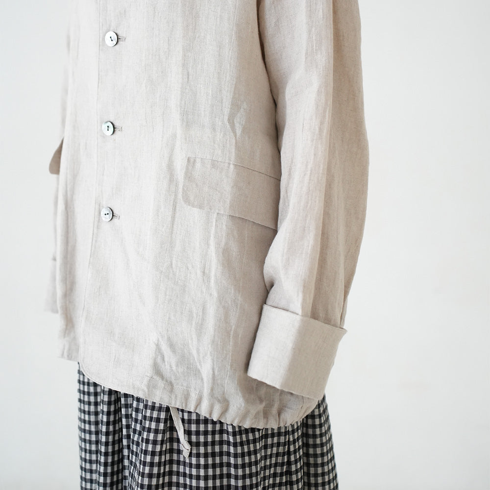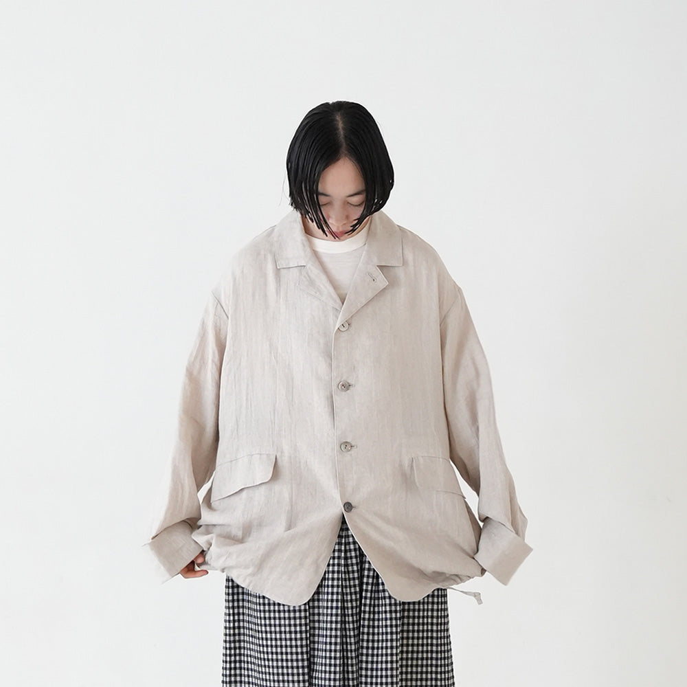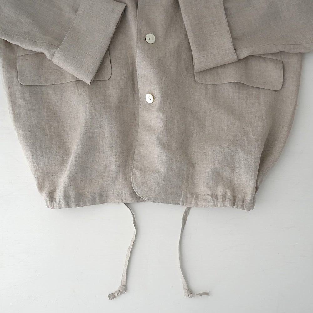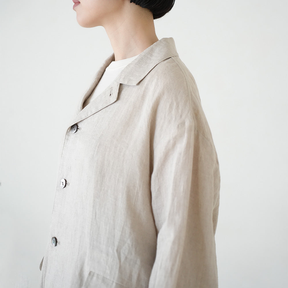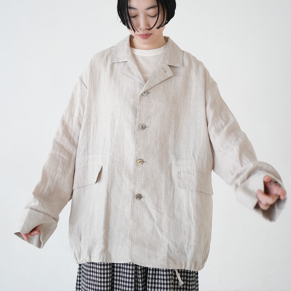 軽やかなリネンキャンパス生地を使用し、通気性と柔らかさを兼ね備えた一着。