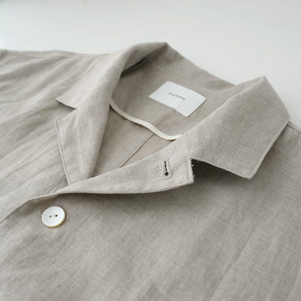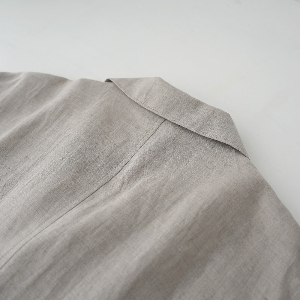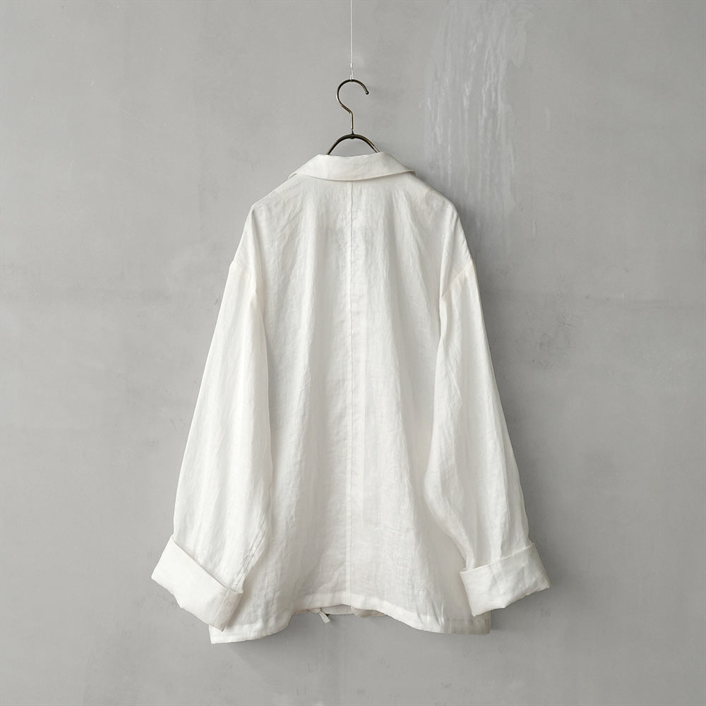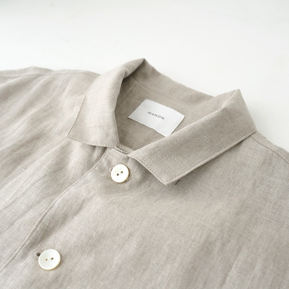 軽やかなリネンキャンパス生地を使用し、通気性と柔らかさを兼ね備えた一着。