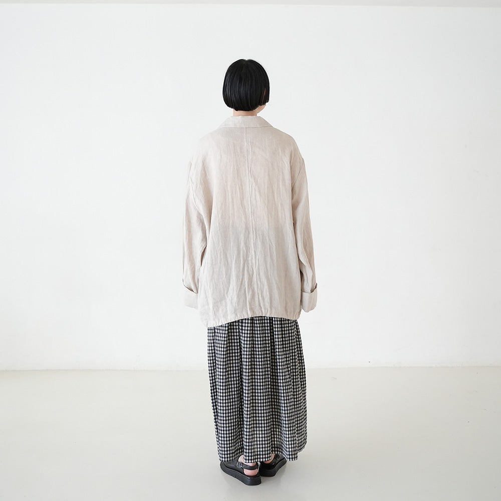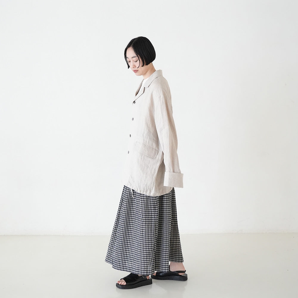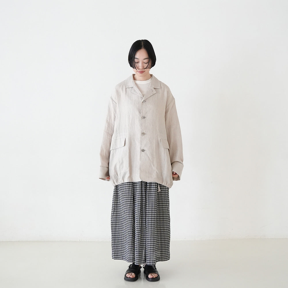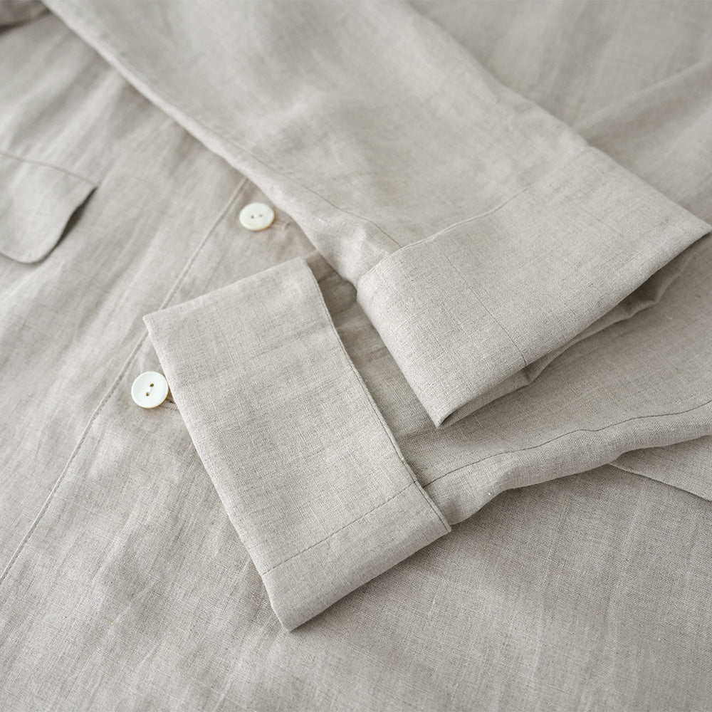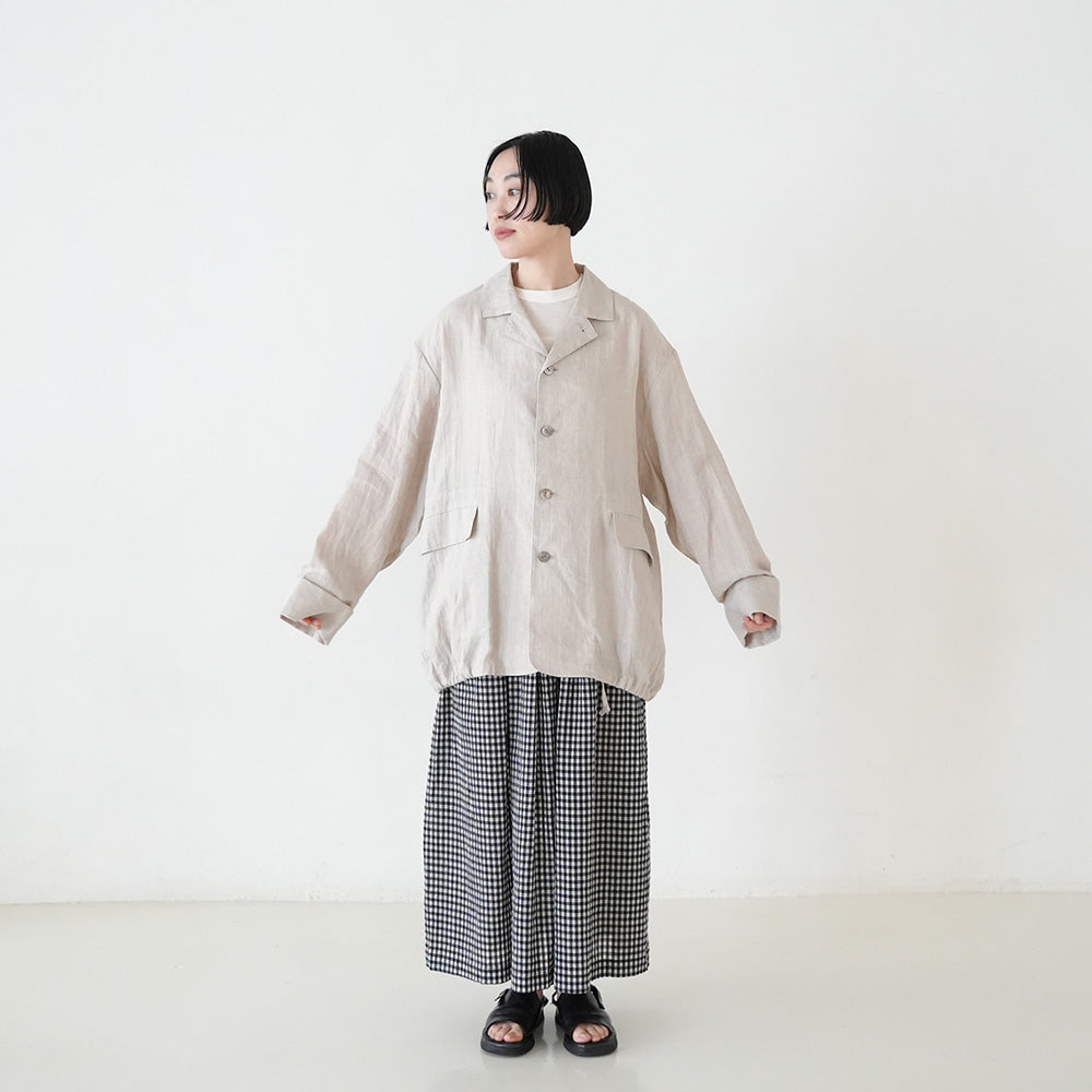 軽やかなリネンキャンパス生地を使用し、通気性と柔らかさを兼ね備えた一着。