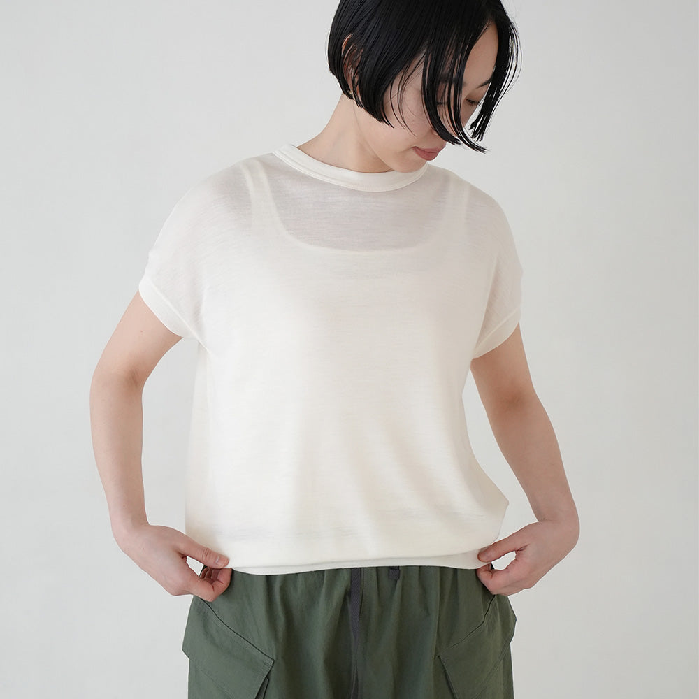 ◇MNN-C-184 WOOL MIX COOL GATHER SLEEVE TEE